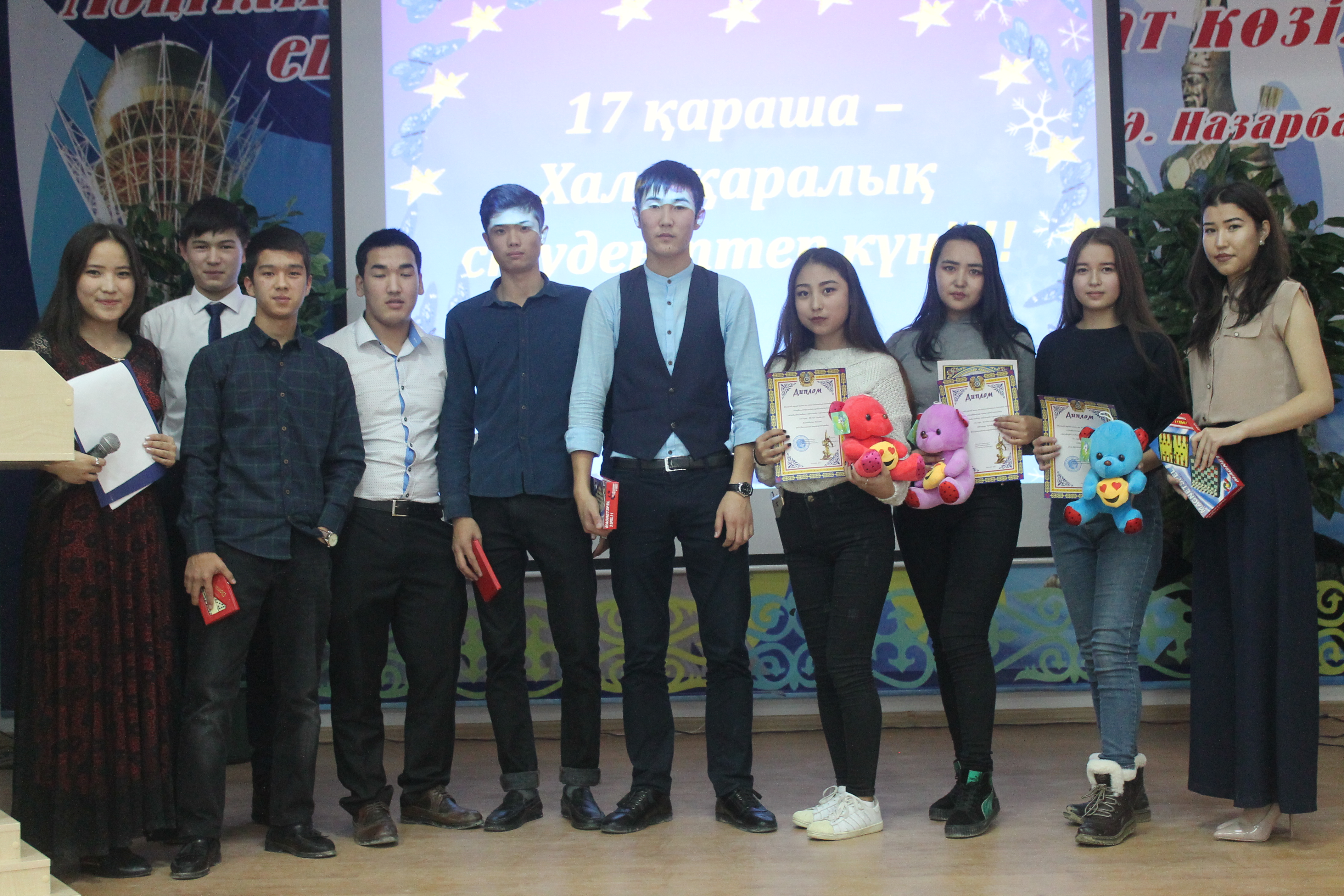 Колледжімізде 17-қараша "Студенттер күні" мерекесіне орай, ІІ курс топ кураторлары Кенжеғалиева Римма мен Дощанова Жанна және жастар комитетінің ұйымдастыруымен "Қызықты көңіл,студенттік өмір!"атты концерттік бағдарлама өтті.