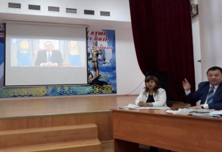 Колледжімізде Мемлекет басшысы Н.Назарбаевтың 2018 жылдың 10 каңтарда жыл сайынғы дәстүрлі халыққа арнаған "Төртінші өнеркәсіптік революция жағдайындағы дамудың жаңа мүмкіндіктері" атты жолдауы бойынша, негізгі бағыттырын жүзеге асыру барысындағы міндеттерді түсіндіру, таныстыру мақсатында үстіміздегі жылдың 13 қаңтар күні сағат 10 00-де колледжімізде оқытушылар арасында жиналыс өтілді.