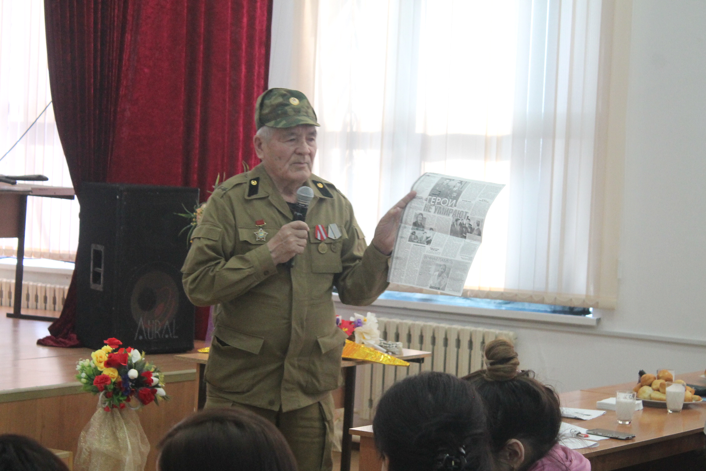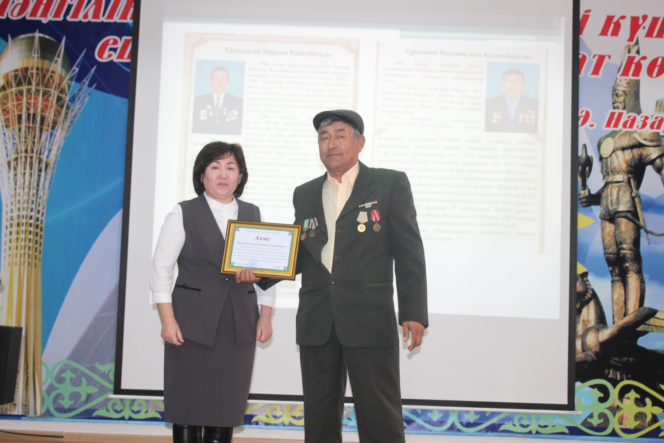 Ауған соғысы ардагерлері Қонаров Сисен Атыраубайұлы мен Тасболатов Нұрлан Бейімбетұлы ағаларымыз сөз сөйлеп соғыста басынан кешкен қиын оқиғаларды, Жеңіске қалай жеткендігі туралы әңгімелеп берді.