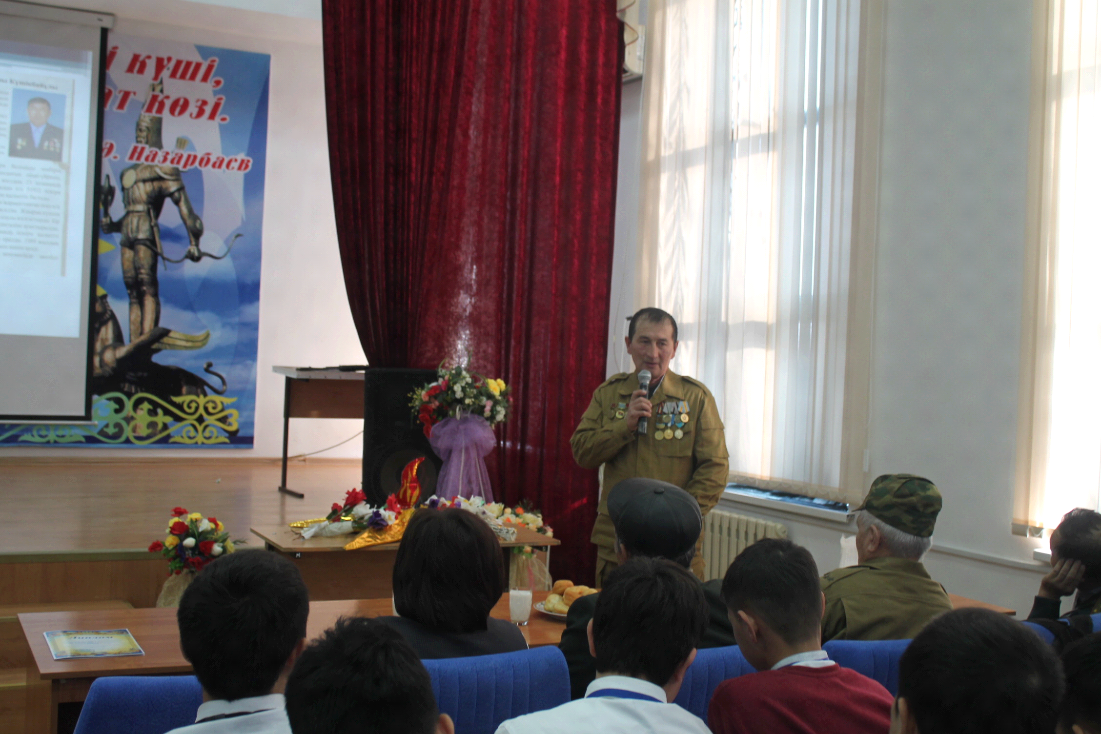 Кешке қатысқанкөрермендер өз ойларындағы сұрақтарын соғыс ардагерлеріне қойып, мағлұмат алды. Кездесу соңында директордың оқу-ісі жөніндегі орынбасары Сарбалиева Маруся Шәмшіқызы Ауған соғысының ардагерлерін алғыс хатпен марапаттап, алғашқы әскери дайындық пәні оқытушысыІ курс студенттері арасында "Жігіт сұлтаны"байқауын тамашалауды тарту етті.