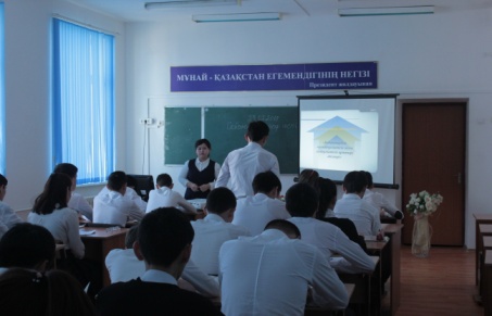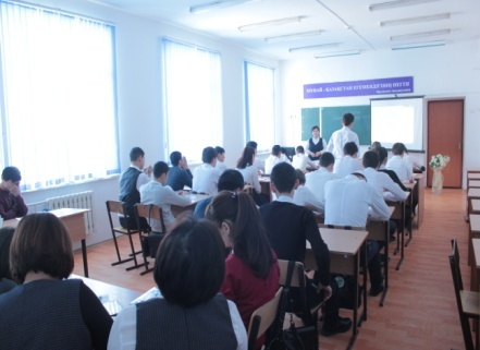 Сабақ барысында үй жұмысына "Ұяшықты таңда" үш тілде сөйле,"Полиглот" ойыны арқылы сұралды. Жаңа сабақты түсіндіру бейнебаян көрсету, сұрақ-жауап арқылы түсініктерін толықтырды. Жаңа сабақты бекіту мақсатында студенттердің білімін таразылау үшін тест беріп жауабын алды. Студенттер өте белсене қатысып, сабақ өз мақсатына жетті.