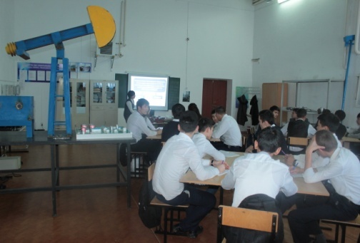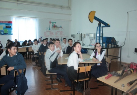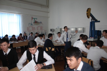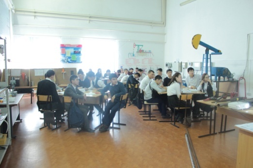 «Мұнай-әлем билеуші қара алтын» атты апталықтың жоспарына сәйкес І санатты арнайы пән оқытушысы Саргалиева Салтанат Косаевна "Мұнай және газ скважиналарын пайдалану" пәнінен ІІ курс 26 тобында "Скважиналарды күрделі жөндеу жұмыстарын жүргізгені туралы акт толтыру" атты тақырыбында ашық сабақ өтті. Білім алушыларды жер асты жөндеу жұмыстары кезінлегі құжаттарды сауатты толтыруға, құжаттардың қандай жағдайда толтыратындығына, әр цехтың өз міндеттері бар екендігін білуге үйрету,білімділікке үйрету мақсатында өтілді. Сабақ CLIL әдісін қолдануы арқылы тартымды өтіп, бірнеше техникалық термин сөздерді ағылшын тілінде қолданып үйренуіне мүмкіндік берді. Нәтижесінде сабақ мақсатына жетті.