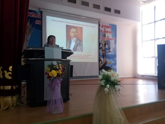 Апталық А.Құнанбайұлының 175 жылдығына арналған іс-шаралар жоспарымен ұштастыра жасақталып, Студенттерге Ұлы Абайдың өмірімен шығармашылынан толық мағлұматтар берілді.