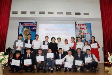 Шараны Директордың оқу ісі жөніндегі орынбасары М.Сарбалиева ашып студенттерді құттықтап, І курсқа қабылданған студенттерге студенттік билет пен сынақ кітапшасын табыстады . Шара студенттердің яғни жастар комитетінің дайындаған мерекелік қойылымдарымен жалғасын тапты. Мерекелік шараның соңында колледждің қоғамдық жұмыстарына белсене атсалысып жүрген студенттер Алғыс хатпен марапатталды.