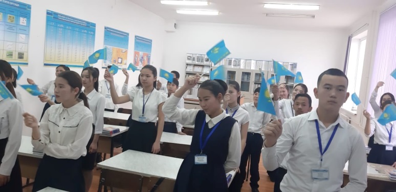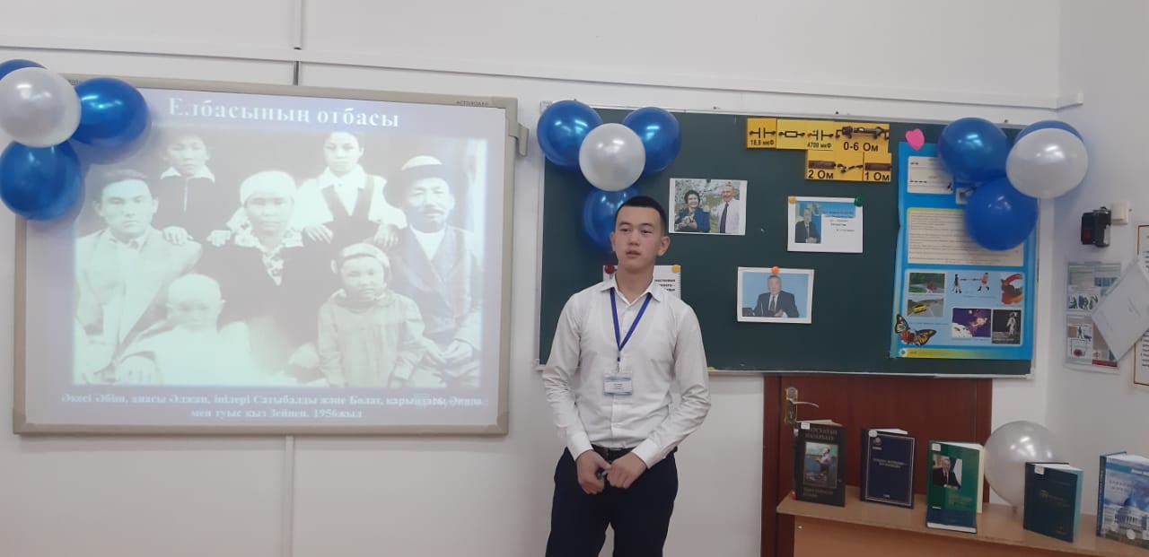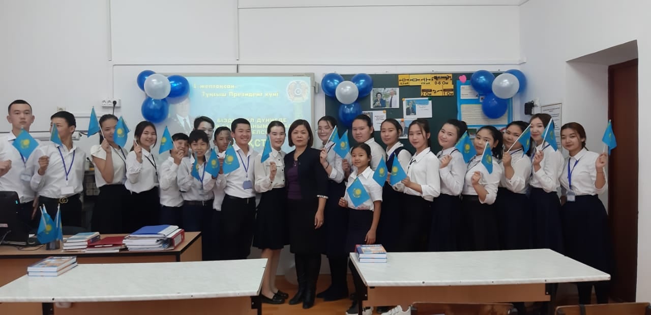 Сабақтың мақсаты Қазақстандық патриотизмді, ұлттық сананы қалыптастыру; Тәуелсіз мемлекет - ҚР қалыптасуы мен дамуындағы Ұлт Көшбасшысы рөлінің маңызын түсіндіру. Студенттердің бойында Қазақстанның мемлекеттілігіне және оның даму көрсеткішіне, Қазақстан көшбасшысының мемлекеттік құрылыстың теориясы мен практикасына қосқан үлесіне қоғамдық игілік ретіндегі көзқарасты қалыптастыру. Сабақ барысында ҚР Тұңғыш Президенті - Елбасы кітапханасының қоры ұсынған "Өзгерістер қуаты", "Қазақстан патриоты" деректі фильмдері көрсетілді. Тұңғыш Президенттің халықаралық бастамалары, Қазақстан егемендігінің қалыптасу кезеңдері, Н.Ә.Назарбаев. Қазақстан Республикасының экологиялық проблемаларын шешу жолындағы қызметі тураллы толық мағлұматтар берілді.