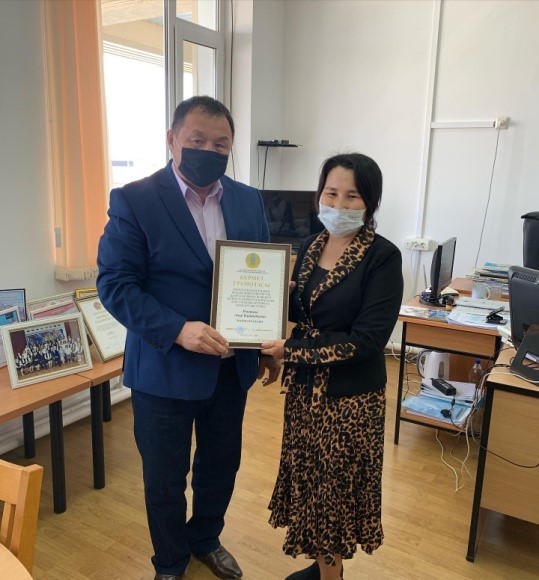 Колледжі директоры М.О. Ибраев марапатталған қызметкерлердің еңбектеріне толағай табыстар тілеп алған марапаттарын табыстады