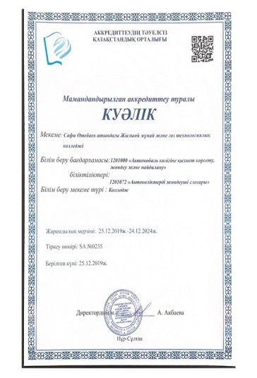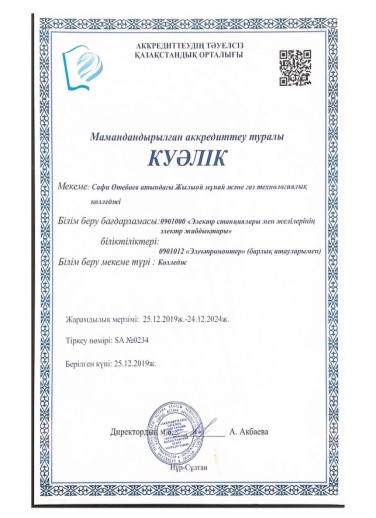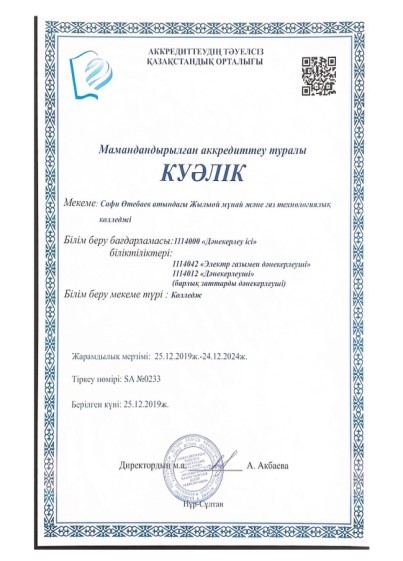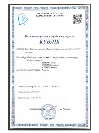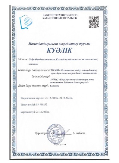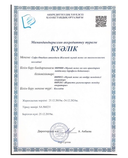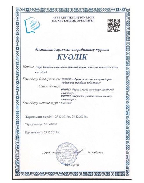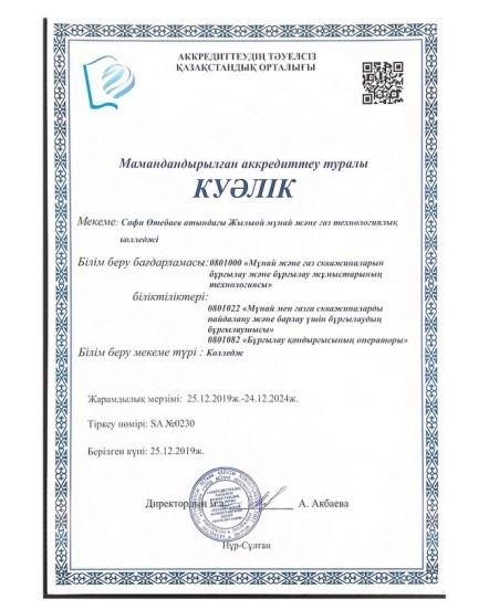 С. Өтебаев атындағы Жылыой мұнай және газ технологиялық колледжі 5 жылға институционалдық және мамандандырылған аккредиттеуден өтті.
