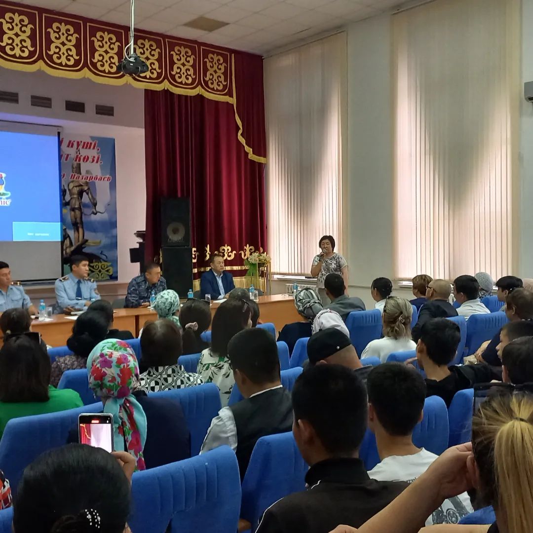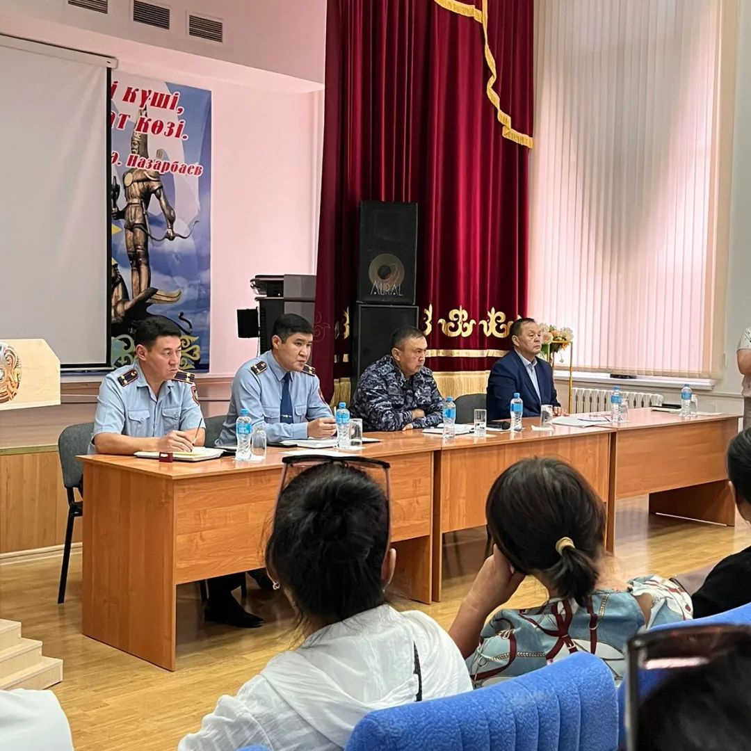 6 қыркүйек күні колледжде Атырау облысы полиция департамент бастығының бірінші орынбасары полиция полковнигі Сейдуалиев Абдигани Тойшиевич, Жылыой ауданы полиция бөлімінің бастығы, подполковник Икласов Ринат Абатович және полиция полковнигі Бекалиев Иса Кубашович колледж студенттерімен және ата-аналармен кездесу өткізді. Кездесуді колледж басшысы М.Ибраев ашып Заң қызметкерлеріне колледж тарихы туралы шолу жасап жетістіктерді де айта кетті. Кездесуде басты қозғалған мәселе жасөспірімдер арасындағы құқықбұзушылықтың алдын алу, кәмелетке толмағандар арасындағы қылмыстың өсуіне жол бермеу, жастардың түнде ата-ананың рұқсатынсыз жүруі және жаман әдеттерден бойын алыс ұстауы туралы айтылып, ата-аналар өз ой-пікірлерімен алмасып ұсыныстарын берді.